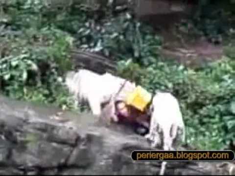 Επίθεση λευκής τίγρης σε άνθρωπο (Σοκ βίντεο )
